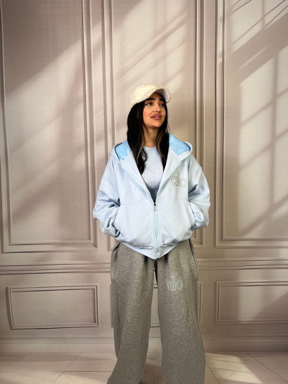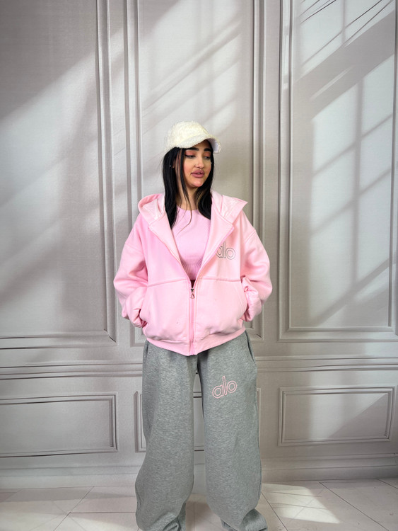 ست سه تیکه دخترانه الو alo سوئشرت باکسی تاپ و شلوار جنس پنبه سه نخ